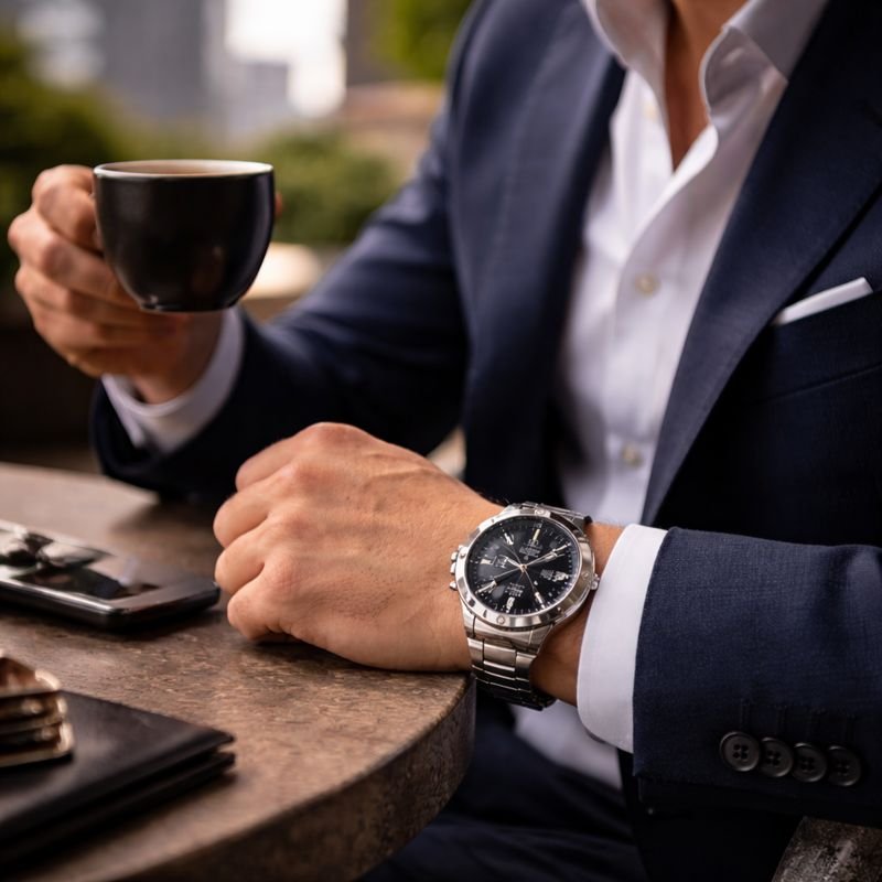 Olhar o pulso é mais discreto, elegante e rápido do que tirar o telefone do bolso, principalmente em reuniões, eventos formais ou ambientes profissionais. Além disso, o relógio ajuda a compor o visual, algo que nenhum dispositivo digital substitui.
