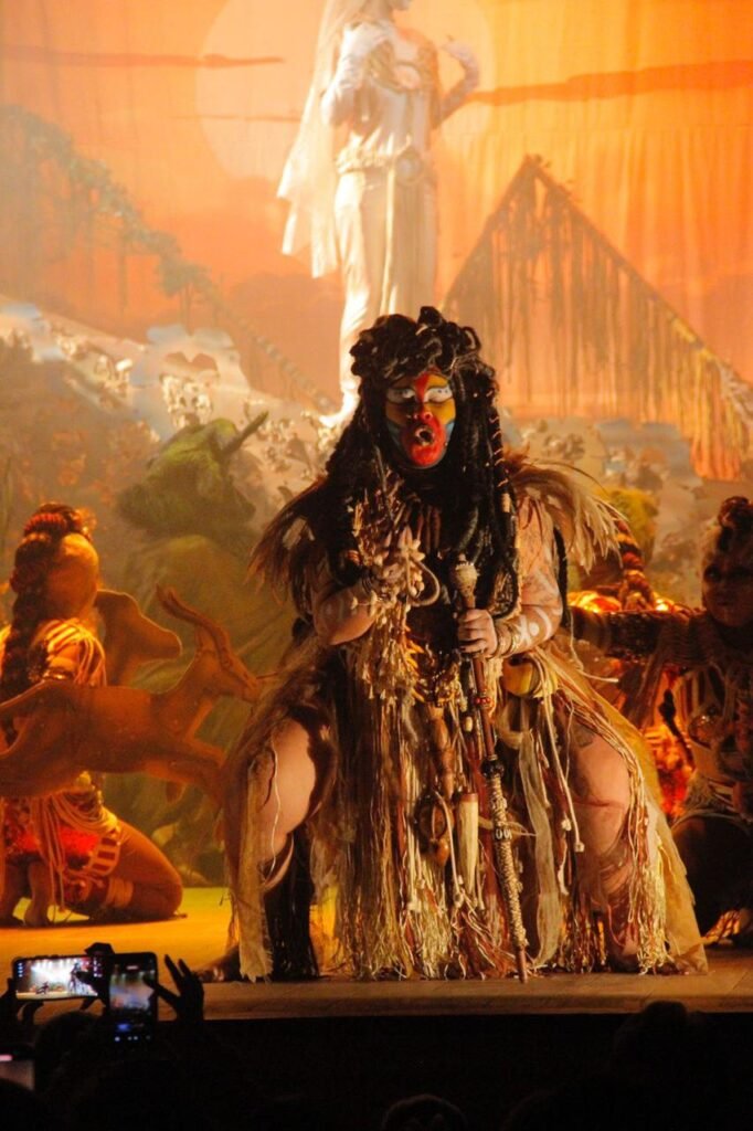 Entre os destaques está a imponente Pedra do Rei, cenário criado em parceria com os alunos de Arquitetura e Urbanismo do UNILASALLE, que simboliza os grandes reis do passado como guias para as futuras gerações. Outro ponto alto são os figurinos, assinados pelo próprio Diego Ramos, que são luxuosos e inovadores e unem sofisticação, ousadia e criatividade em cada detalhe.