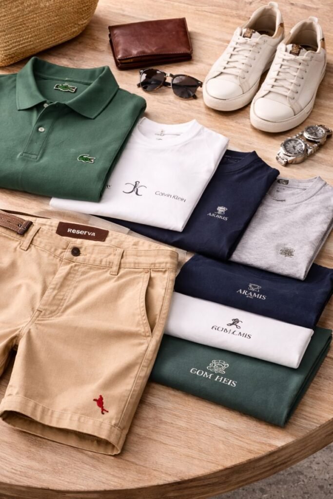 Combine polos com bermudas bem cortadas, tênis discretos e óculos escuros para um visual moderno.